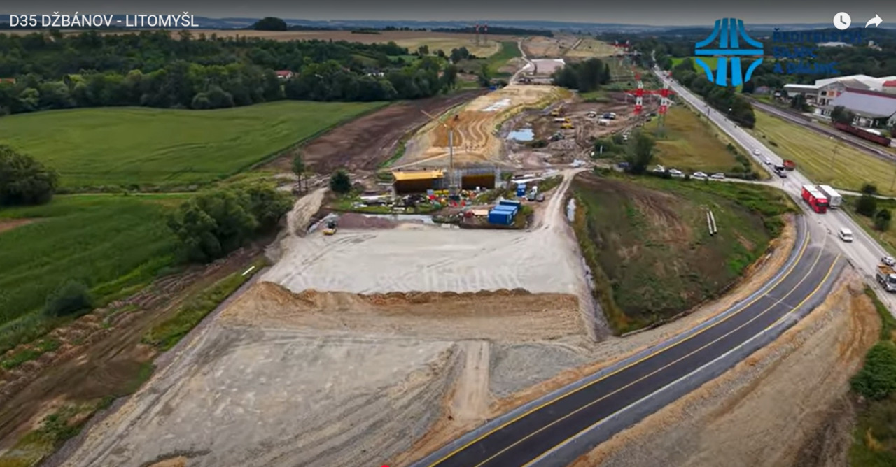 VIDEO / Stavba dálnice D35 v úseku Džbánov - Litomyšl, srpen 2025:Na 7,5 kilometrů dlouhé trase úseku dálnice mezi Džbánovem u Vysokého Mýta a budoucí mimoúrovňovou křižovatkou u Řídkého před Litomyšlí se nyní budují náspy, spodní konstrukce mostů a sanuje se podloží.