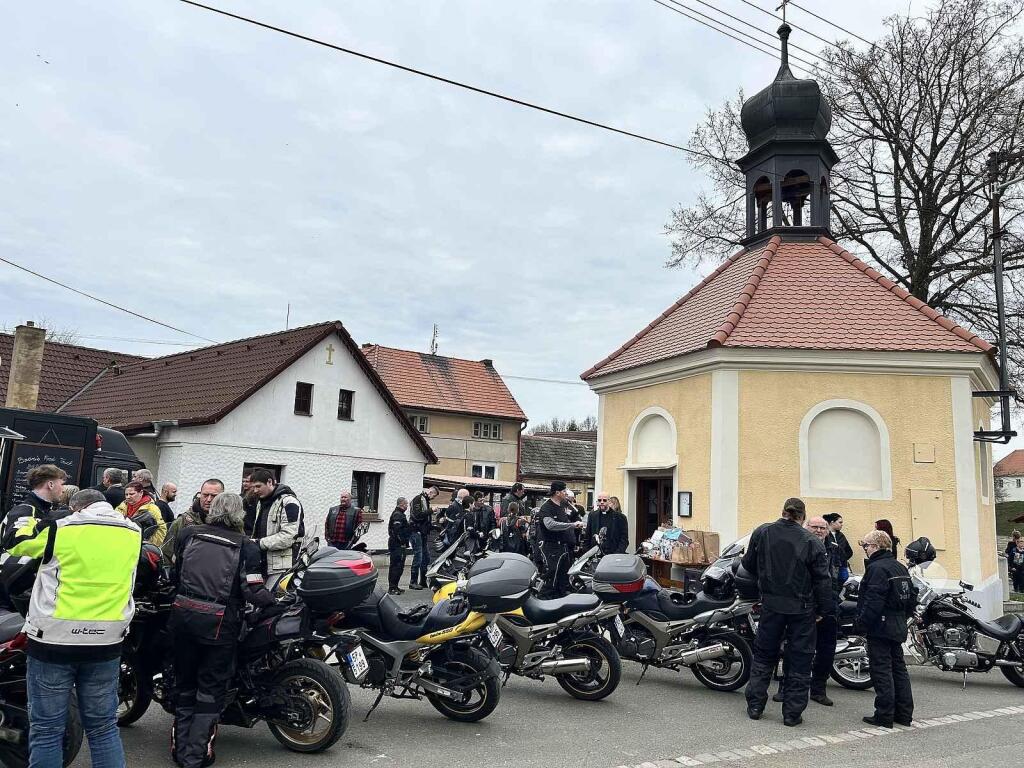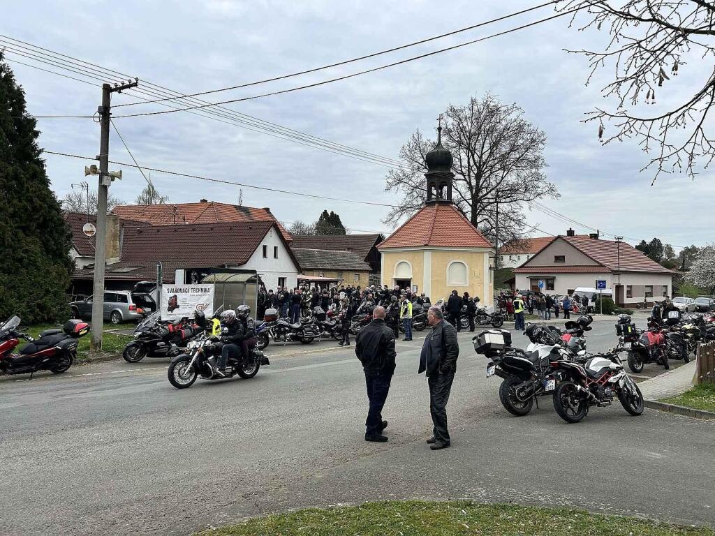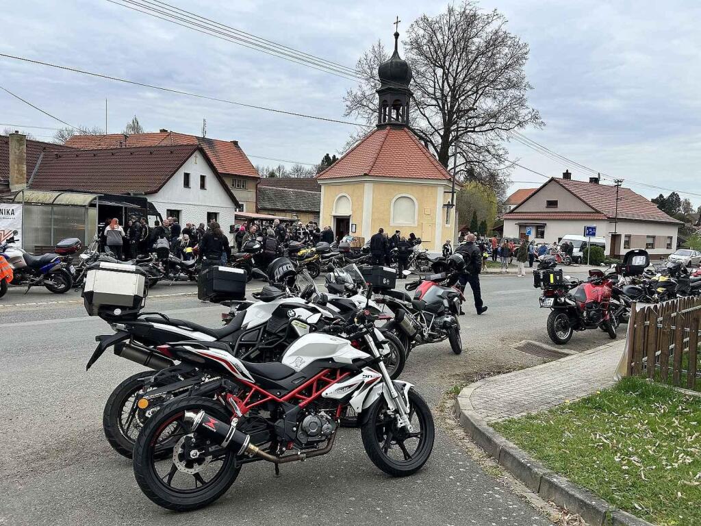 A i když jde o zatím krátkou tradici, tak je vidět, že se o ní už mezi motorkáři ví, jelikož zaplnili celou náves. Farář všem požehnal, rozburácely se motory a jezdci se vydali na spanilou jízdu.