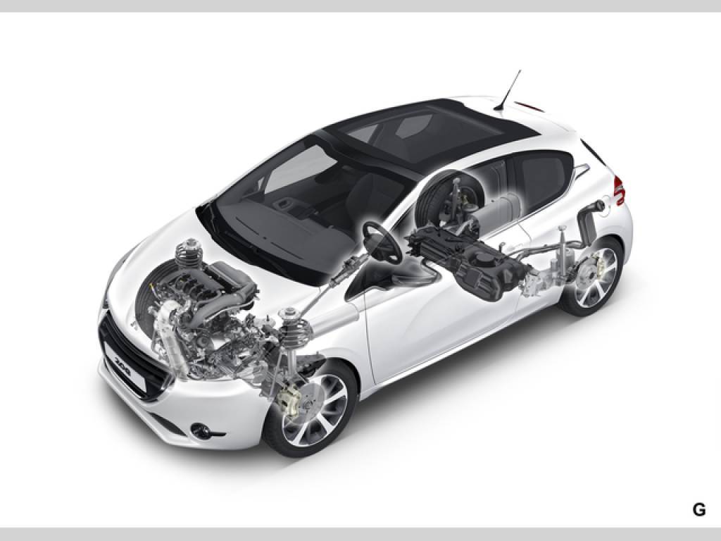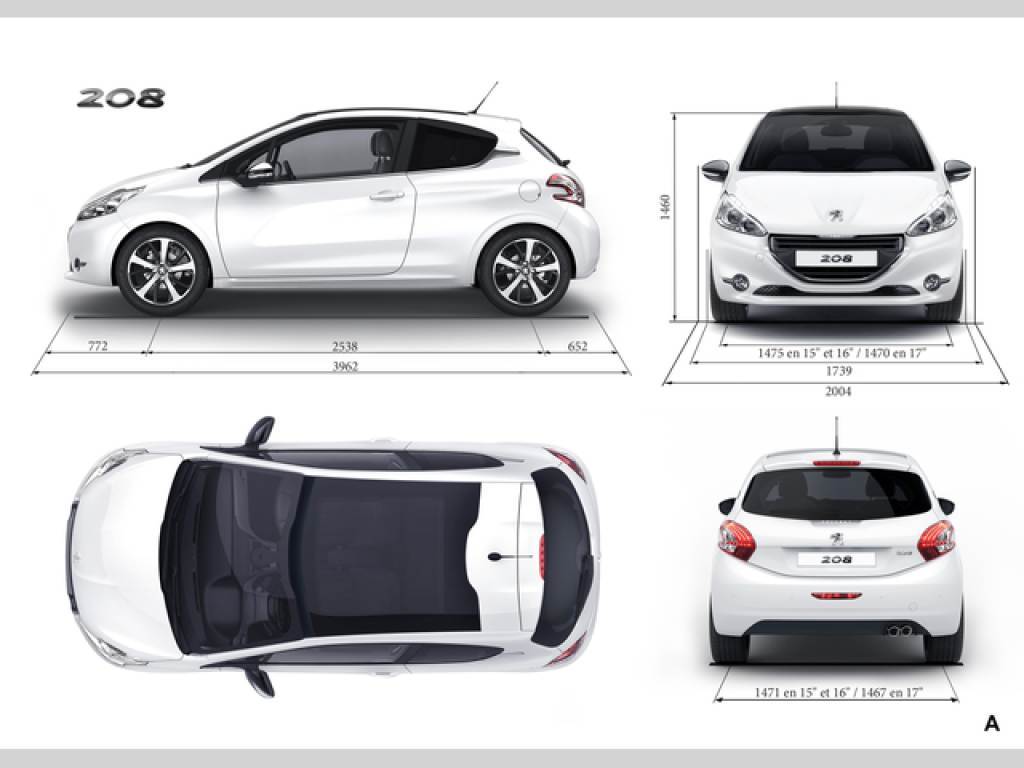 S kratším předním (- 6 cm v porovnání s modelem 207) a zadním (- 1 cm) převisem má 208 vyváženější proporce a je i lehčí. Hledisko hmotnosti se dle výrobce promítlo do každého prvku: přední absorpční rám z hliníku, optimalizované rozměry předního nosníku, laserové sváření střechy, maximální použití plechu THLE a UHLE, odhlučnění motoru, atd. A výsledek? Se stejným motorem 1.4 HDi váží model 208 o 110 kg méně než identická verze 207 a první verze řady s benzinovým motorem a srovnatelným výkonem je lehčí o 173 kg.