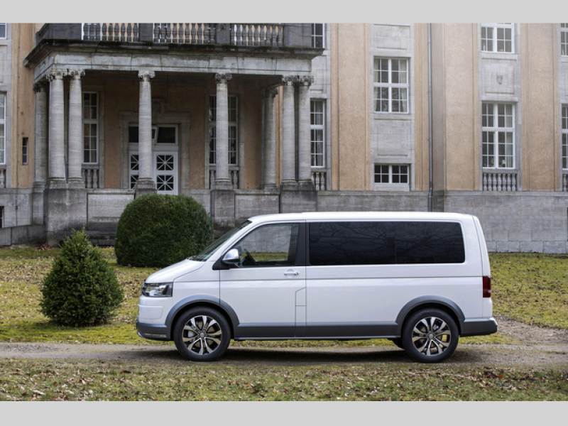 Od svého uitkového sourozence se Multivan Alltrack odliuje upraveným interiérem i exteriérem. Na první pohled lze vidět mohutnějí přední a zadní nárazník, ochranné plastové lity na bocích karoserie a hraně zavazadlového prostoru v edé barvě a letěná devatenáctipalcová kola z lehkých slitin. U Multivanu Alltrack výrobce počítá i s provozem mimo zpevněné komunikace, podvozek je proto opatřen ochrannými kryty.