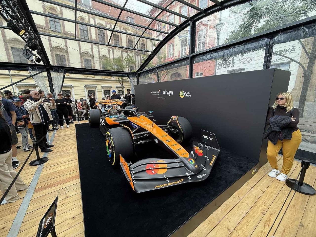 Monopost stáje McLaren si zájemci na Zelném trhu v Brně mohou prohlédnout v době, kdy tento tým v papájových barvách aktuálně vévodí žebříčku takzvaného