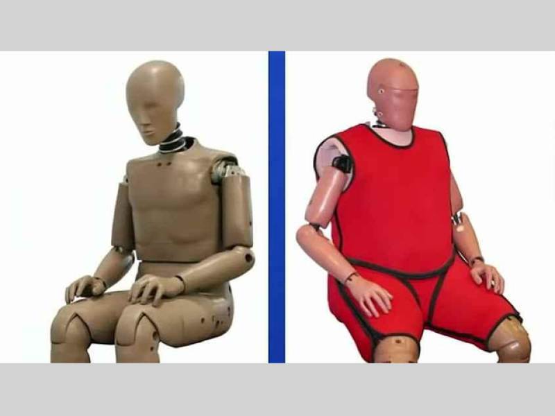 Testovací figuríny přitom zůstávají už roky stejné, ty standardní mužské váží 78,5 kg. Při testech se sice používá víc typů figurín, i ta nejtěžší však váží "jen" 100 kilogramů.
