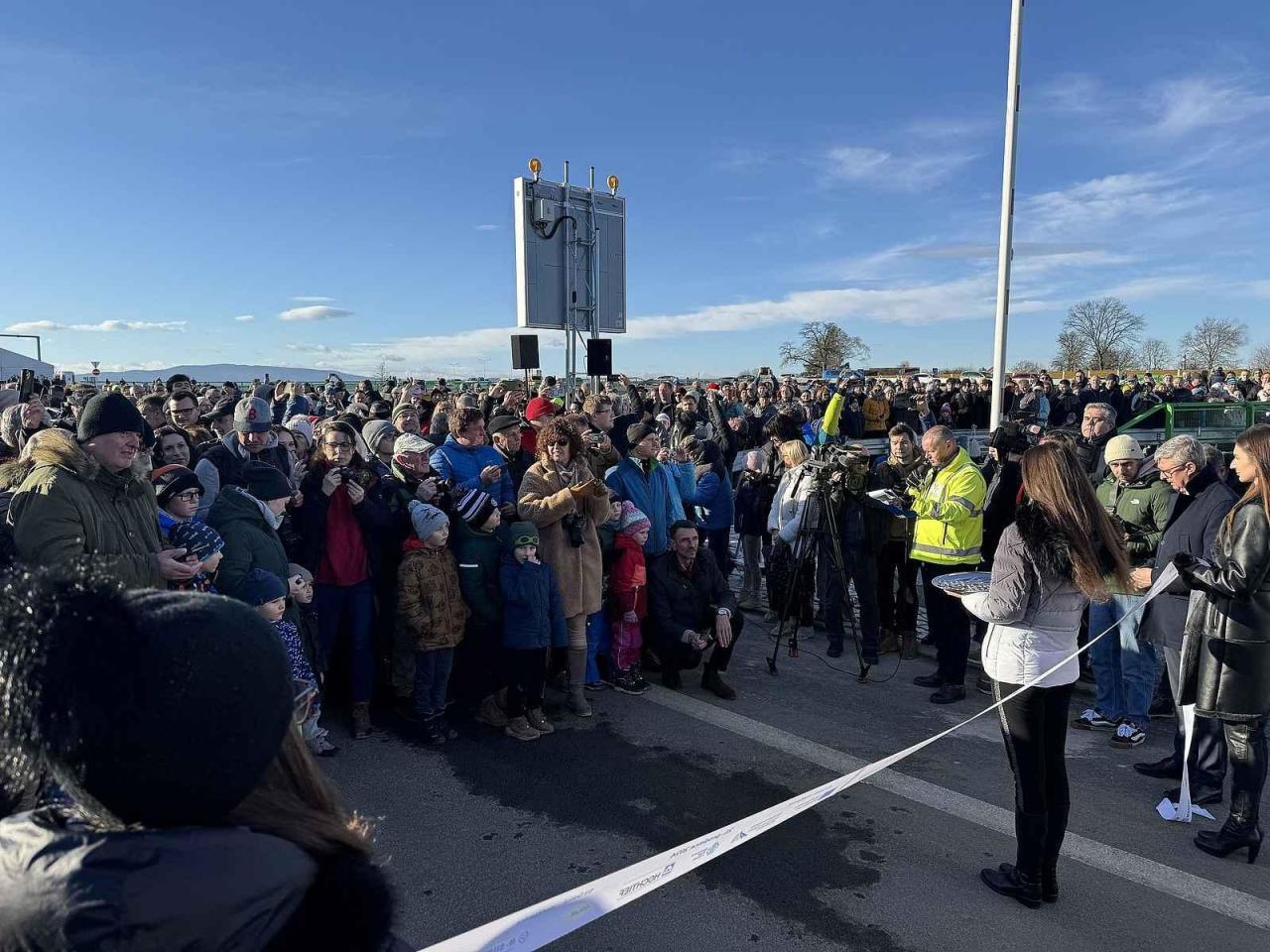 Kromě oficiální hostů dorazily na slavnostní otevření stovky lidí. Někteří přijeli auty, další využili mimořádné spoje, které k této příležitosti vypravil českobudějovický dopravní podnik. Všichni, kteří se na místě sešli, společně hlasitě odpočítali moment slavnostního otevření dálnice. Pásky se stříhaly natřikrát - jako symbol tří úseků nové dálnice. První auta na novou dálnici mohla vyjet ve tři čtvrtě na dvanáct. Někteří řidiči už se na sociálních sítích stačili po poledni pochlubit, že úsek z Budějovic do Kaplice se dá po dálnici zvládnout za 12 minut. Dosud to trvalo třikrát déle.