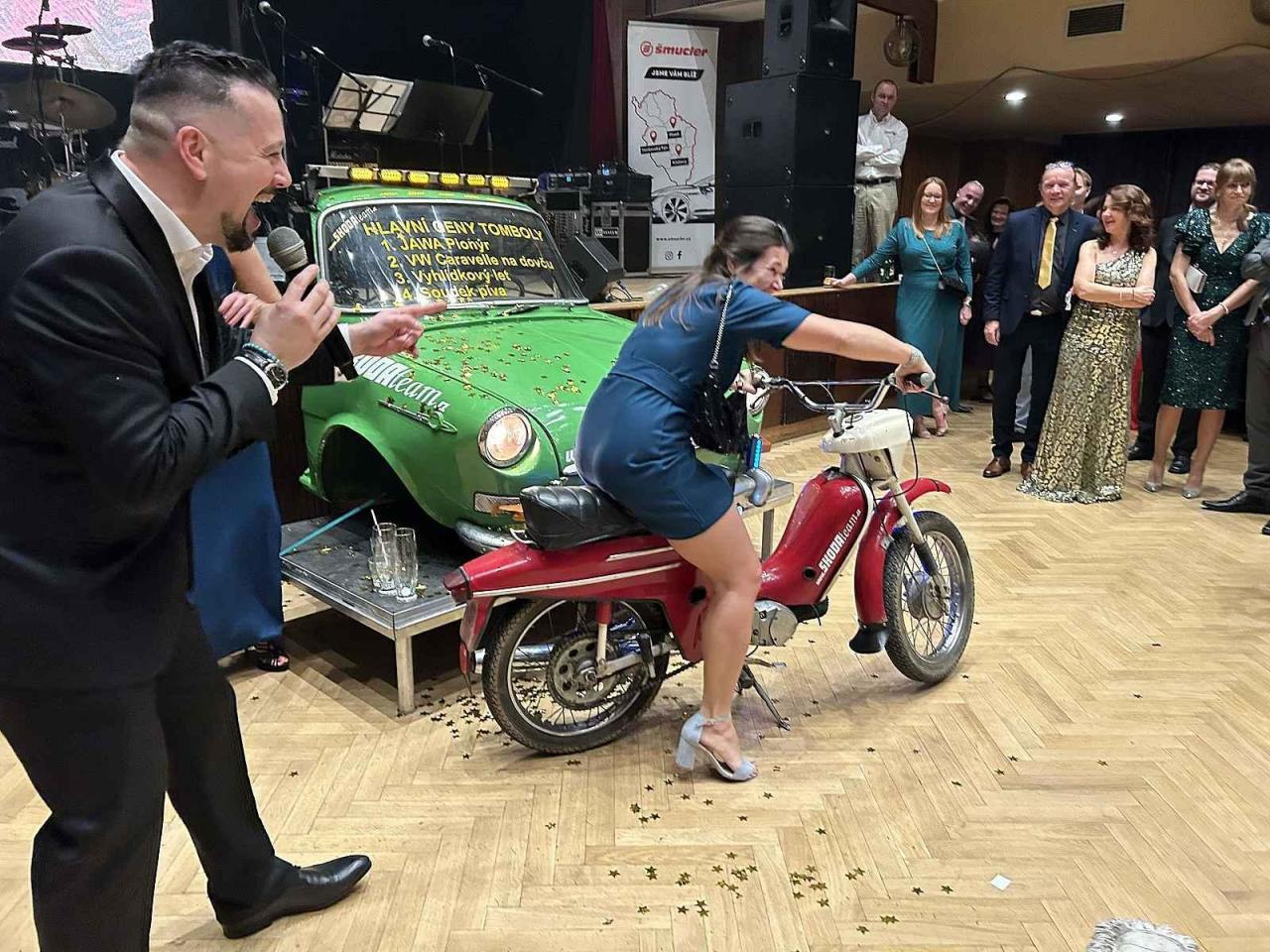 Velkou radost měli výherci cen v tombole. Zvláště pak ti, kteří vyhráli zapůjčení vozu VW Multivan. Hlavní výhrou byl Jawa Pionýr.
