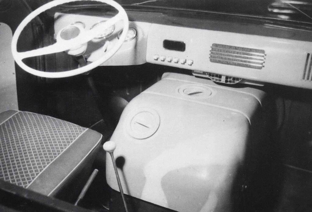 vůz s trambusovou karosérií. Tedy s motorem nad předními koly s absencí klasické kapoty. Konstruktéři v