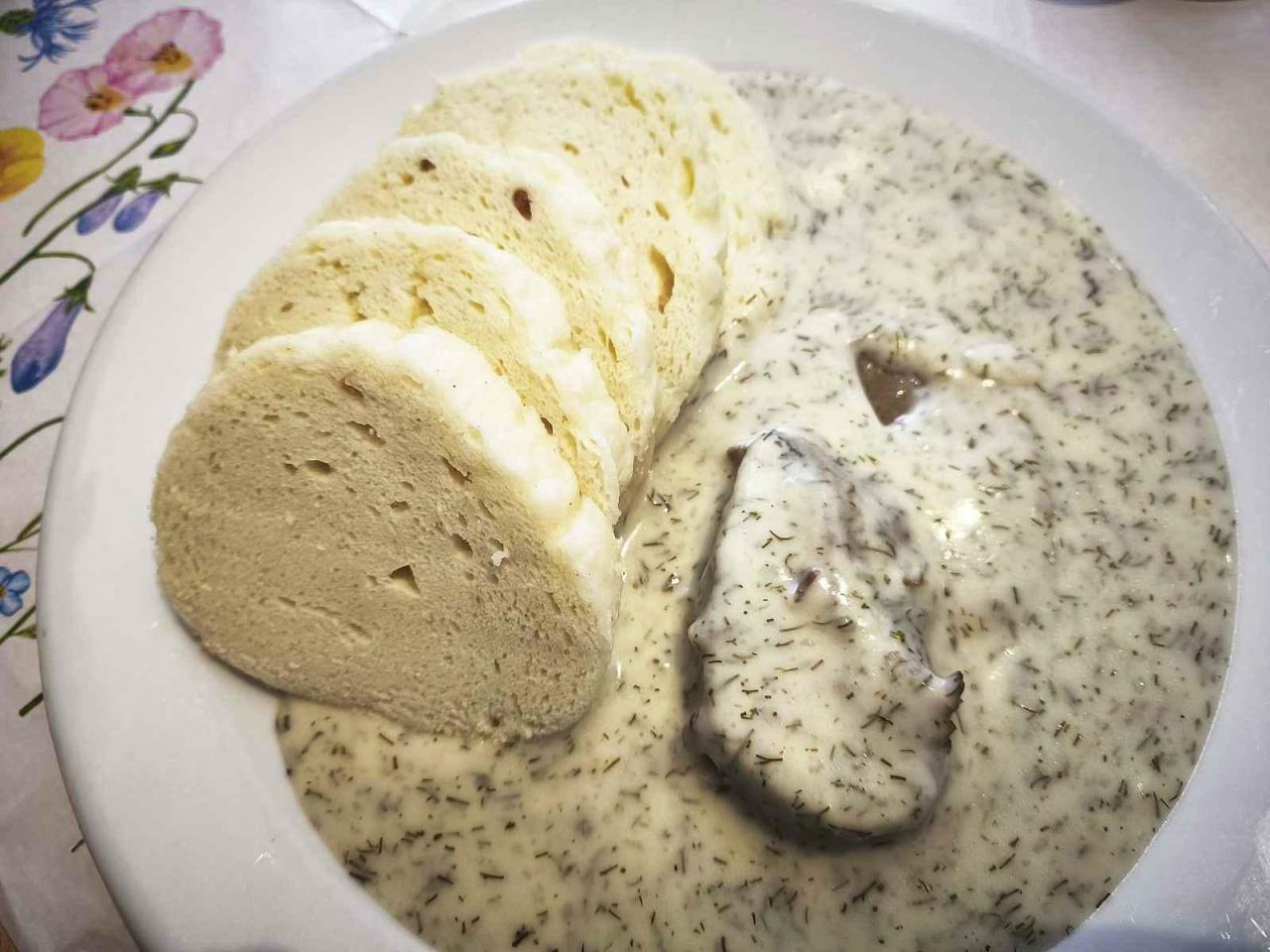 A i když jsme přijeli v celkem rozumnou dobu, kdy hodiny ukazovaly, že je opravdu čas k obědu, byla některá jídla již vyprodána. Ale byla tu jedna česká klasika, které nešlo odolat - vařené hovězí zadní s koprovou omáčkou a houskovým knedlíkem za 220 korun.