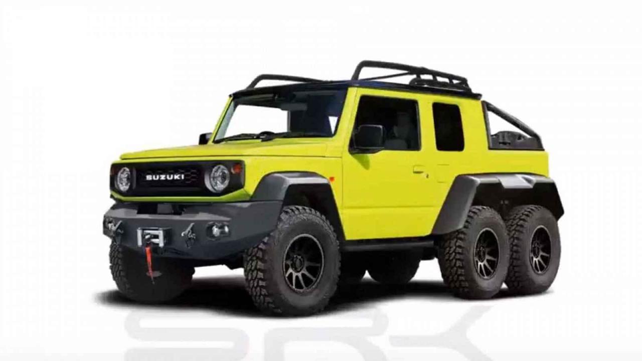 Další auto se inspirovalo Mercedesem-Benz G 6x6. Na šesti kolech by se mohlo objevit i Suzuki Jimny, jak ukazuje ve své práci studio SRK Design.