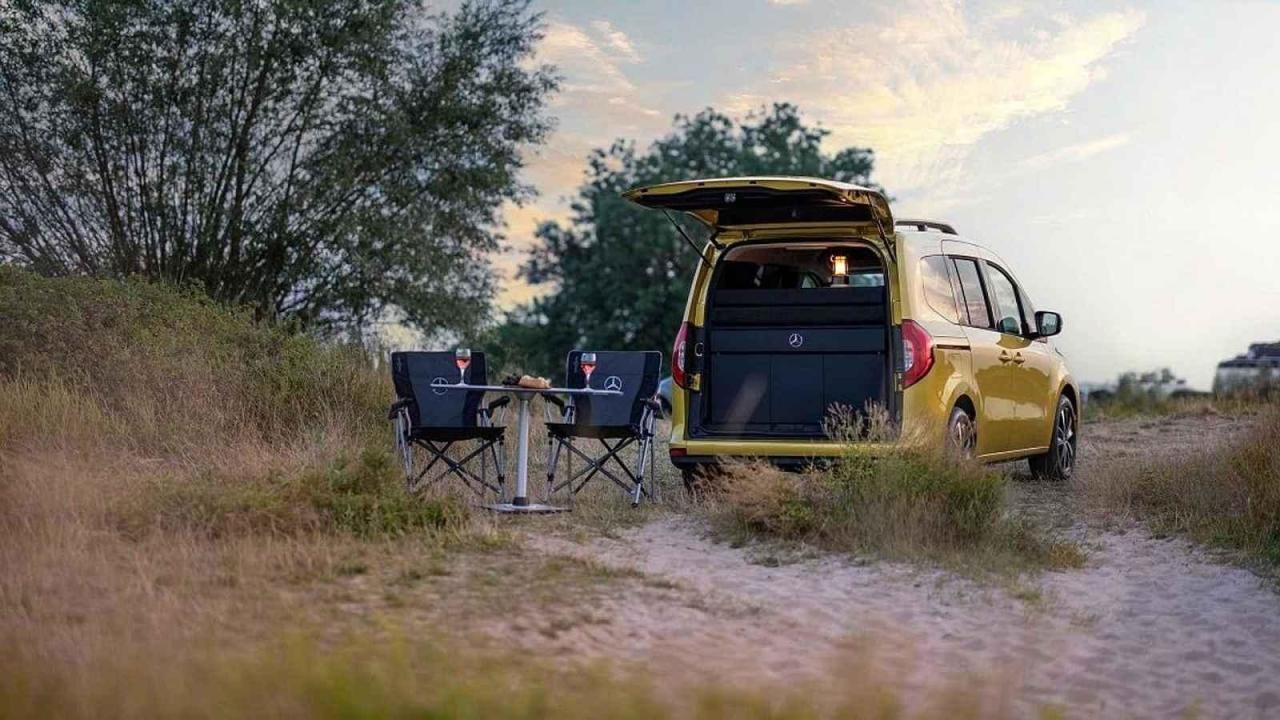 Dvojici lidí, která nemá příliš velké nároky na přepravu zavazadel, může při jejich výletech do přírody dobře posloužit jako malý pojízdný hotel Mercedes-Benz třídy T ve verzi Marco Polo.