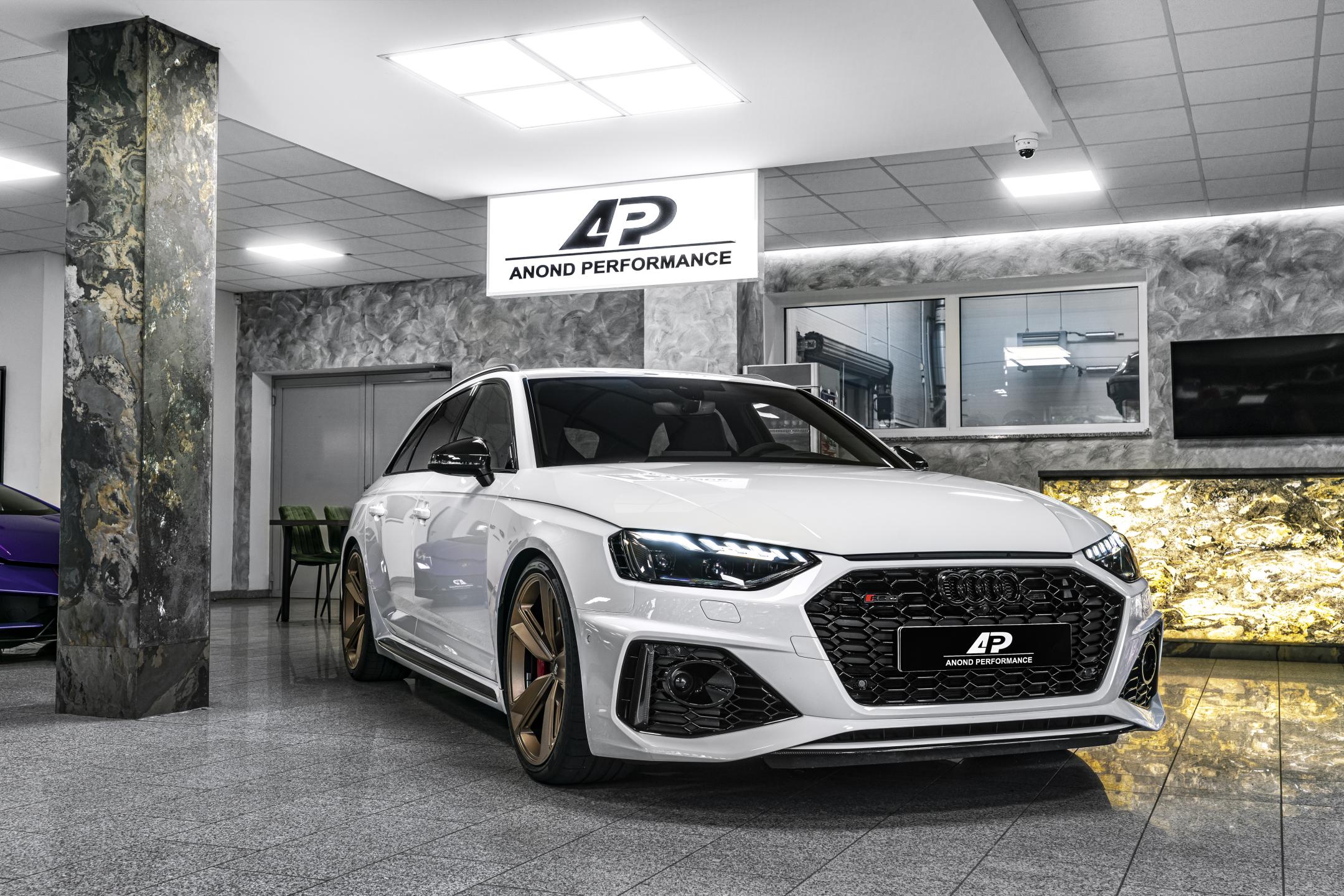 O tom, e se jedná o skutečnou raketu na kolech, svědčí objemný agregát pod kapotou. Jedná se o osmiválec V8 s objemem 4,2 litru a přímým vstřikem benzinu, který poskytuje maximální výkon 309 kW (420 koní) při 8250 ot./min a max. točivý moment 430 Nm. Nahrazuje tak přeplňovaný estiválec V6 2,7 litru, který měla předchozí RS4 a jen se chlubil parametry 280 kW a 440 Nm. Při snaze o maximální zrychlení dosáhnete s RS4 hranice 100 km/h za 4,8 sekundy, za 16,6 sekundy u mine ručička rychloměru hranici 200 km/h a zrychlení skončí a na elektronicky omezené max. rychlosti 250 km/h. O zkrocení z vysokých rychlostí se postarají brzdy s vrtanými kotouči o průměru 365 mm vpředu a 324 mm vzadu, jízdní vlastnosti přiostřuje podvozek sníený o 30 mm nebo irí rozchod kol, vpředu o 37 mm a vzadu o 47 mm.